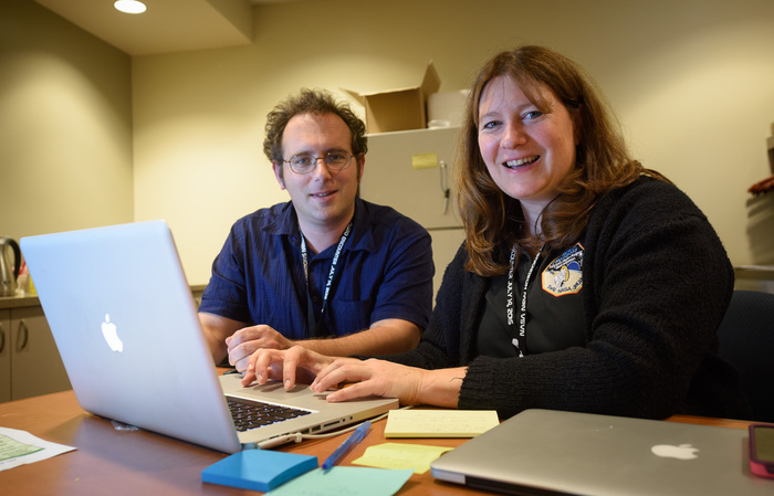 | Con Tsang and Carly Howett look at some MVIC data. |