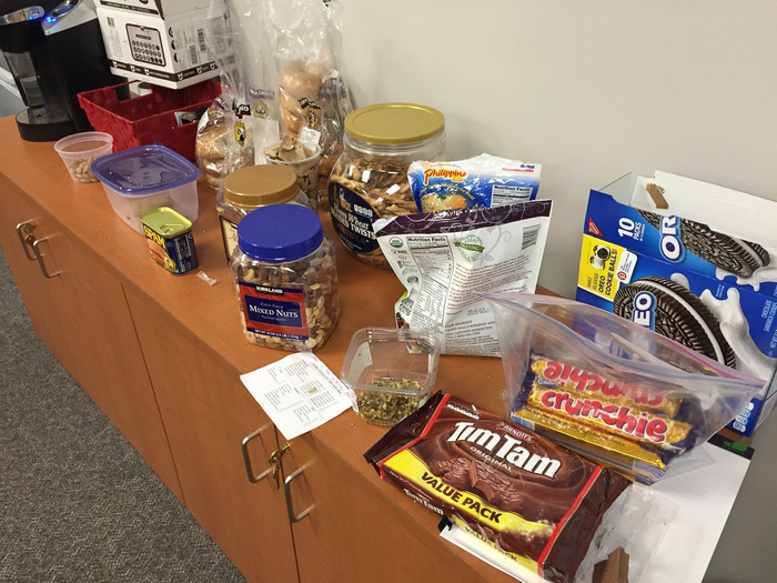 | No wonder the GGI team room is where everyone else heads for snacks. Though that can of Spam looks surprisingly untouched... Photo by John Spencer. |