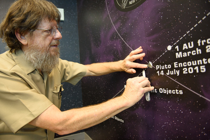 | Jim Green and a New Horizons pencil. |