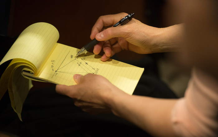 | Navigator Bobby Williams shows off his Styx autographs. "The center point on the plot is Pluto. Styx [the moon] is small enough that it doesn't work into our solution." |