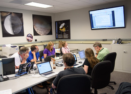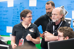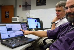 Most of the photos here show other people doing things, and not me, so some people have asked what I was doing at the encounter. I did much of the planning for the ring search and satellite search observations. (We found none of either.) And a lot of my work at the encounter dealt with maintaining and upgrading GeoViz, the visualization tool used by the science team to plan and analyze observations. I did a entry on NASA's blog about GeoViz, and a separate blog entry entry about photographing the mission.