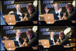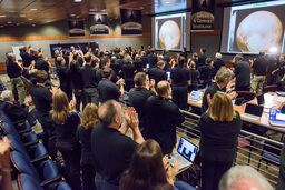 Some events, especially on the encounter day, were at the Kosiakoff Center, which allows cameras. And none of us were allowed in the Mission Operations room, across the street on APL's main campus. For those, you'll have to see the photos from NASA's official photographer Bill Ingalls, and NH mission photographer Michael Soluri.